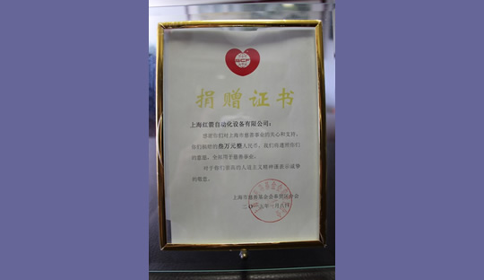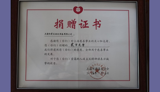 2014年,上海紅箭自動(dòng)化設(shè)備有限公司為上海市慈善基金會捐款